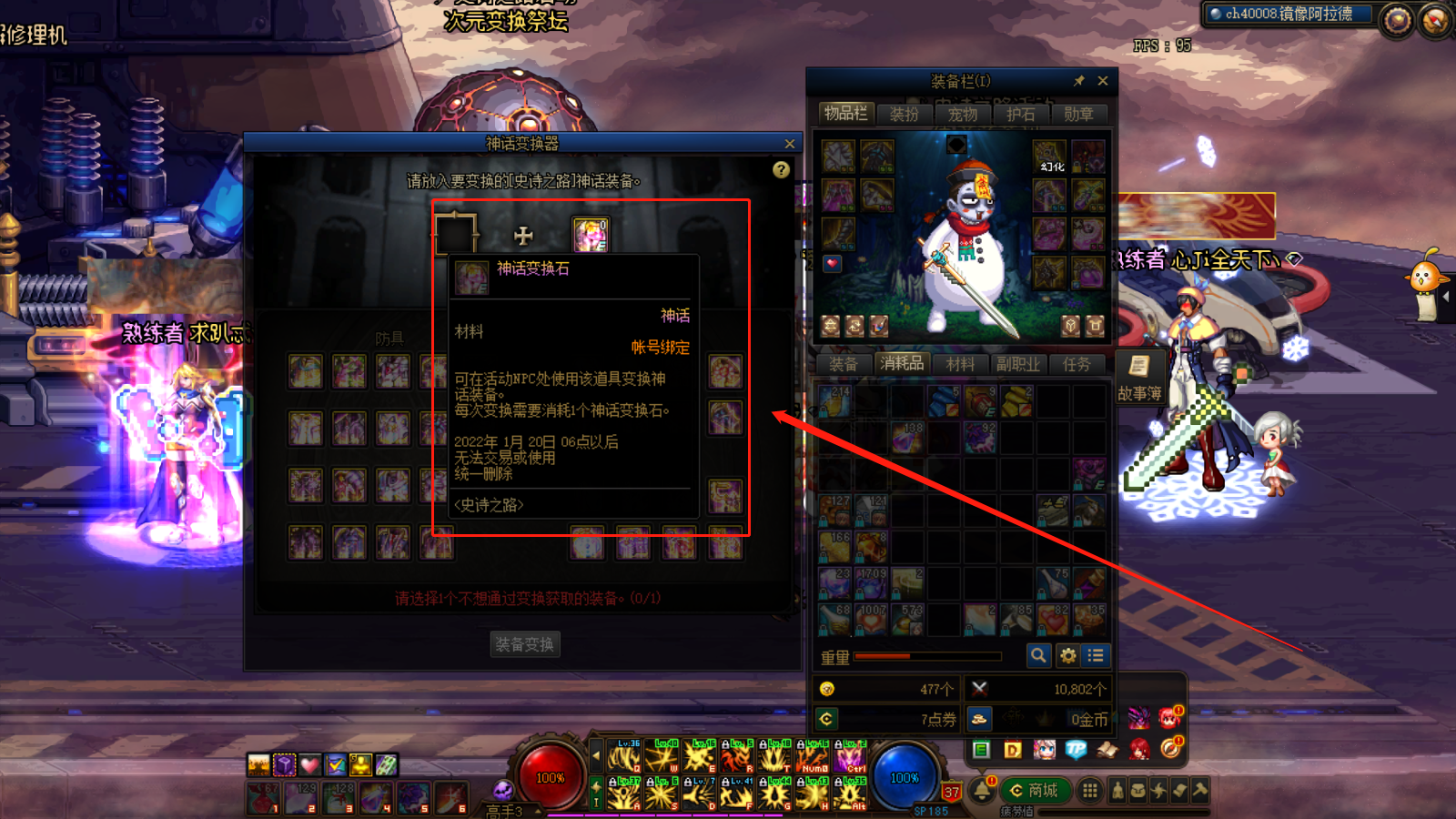 DNF神话变换石可以将神话装备变换一次;首先玩家可以在游戏中前往次元变换祭坛处,然后点击神话装备变换,最后就可以消耗神话变换石来变换神话装备了。