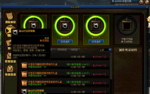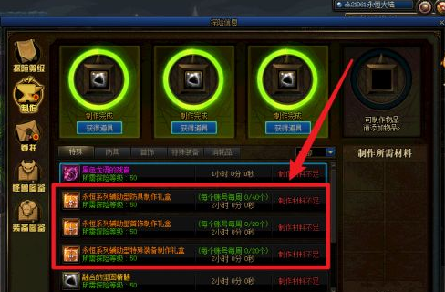 3,使用材料制作永恒大陆功能性传说装备。