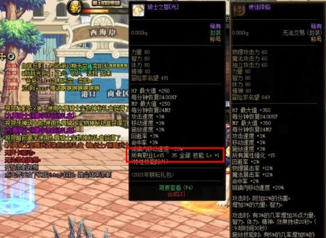 一、五一套主打的内容是3级buff称号以及2级觉醒称号。2021年的五一称号是骑士之誓,称号本身属性是80点四维、3%三速和所有职业15~35全部技能Lv 1。