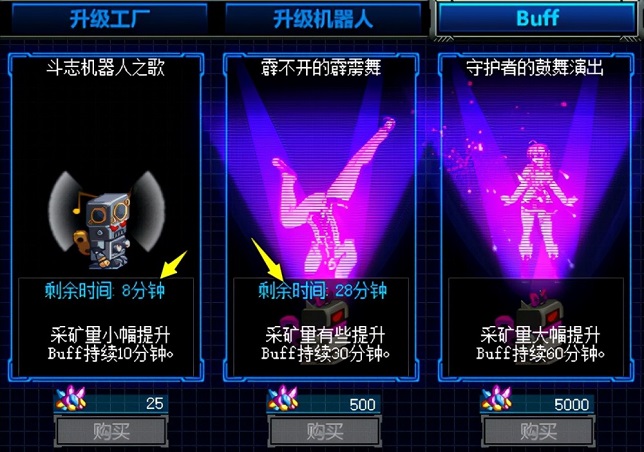 5、可以适用兰迪晶炭购买本地区的采矿buff,提高产出收益。