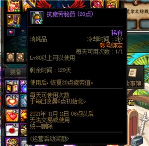 除了免费的疲劳药,我们还可以在购买疲劳药,价格对应不同等级疲劳药,要想升满级这是必需品。以及13周年活动商店,有疲劳药可以购买,仅需1块多就可以获得13个1点疲劳,虽然是蚊子腿但是积少成多,不要放过任何细节。