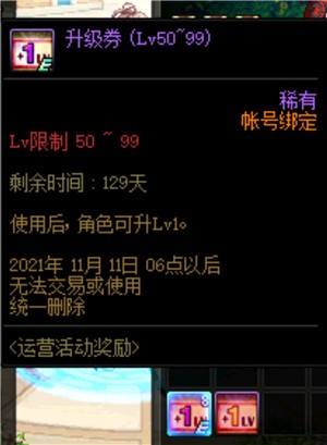 疲劳打完记得使用升级券,可以瞬间升级,并且现在很多升级券都是免费领取,活动赠送都有几十张,完全够用了建议打完疲劳再使用,前期升级比较简单,升级券留到最后用。冒险商店的升级卷一定要注意,有购买限制以及使用限制,30级的阶段可以购买7个,也就是说升到33级就可以使用升级券了,直接到达40级。经过计算冒险团升级券可以升38级。所以在升级路上一定要合理使用,切记。
