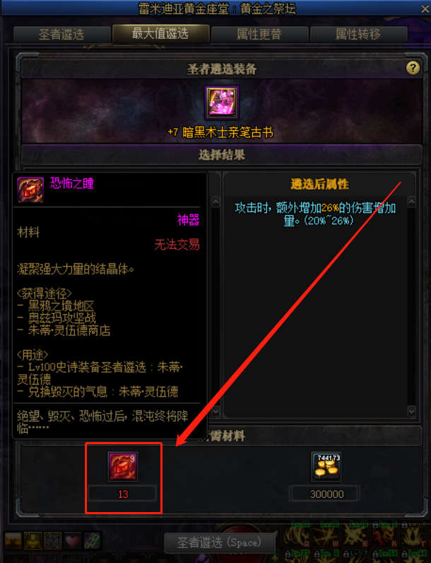 dnf减负后圣者遴选需要几个恐怖之瞳? 在地下城与勇士这款游戏中减负后圣者遴选需要13个恐怖之瞳;首先恐怖之瞳可以在黑鸦之境副本中掉落获得,然后玩家可以在雷米迪亚黄金座堂黄金之祭坛处进行圣者遴选,其中最大值遴选需要13个恐怖之瞳。