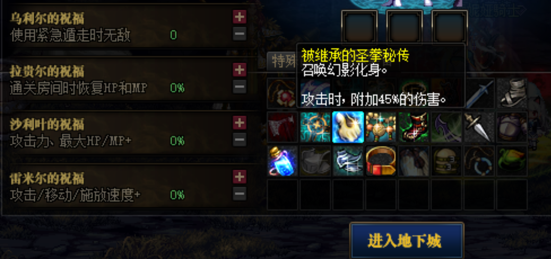 dnf命运抉择1中直接增加伤害的装备是“被继承的圣拳秘传”,它是直接增加伤害词条赋予最高的装备,白字附加高达45%,伤害提升杠杠的,有没有带这件装备,打出的伤害完全天壤之别,在散搭装备下,是平A流、CD流、全能流都必带的神器。