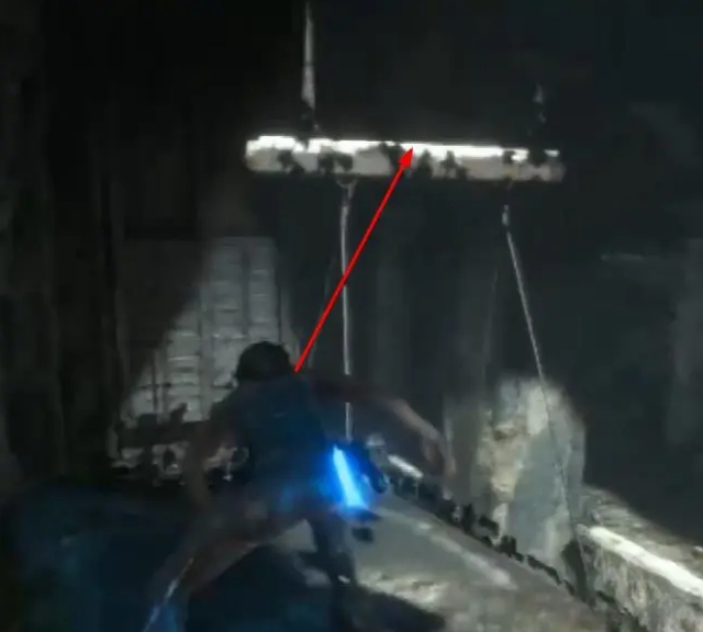 3、借力跳上墙壁,往上爬步向右边平移,最后借助柱子再跳就能抓住横梁了,即可完成抓住横梁这一关。