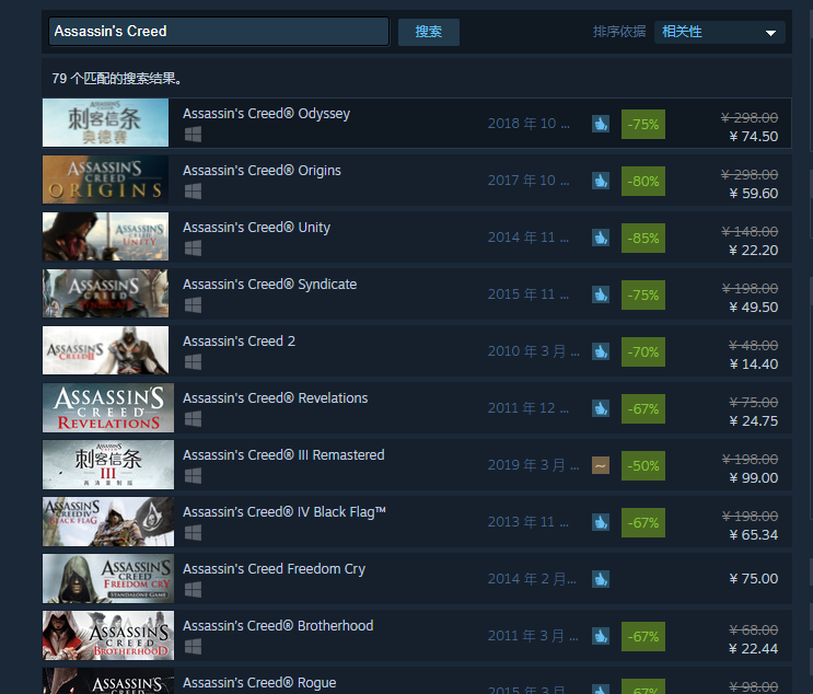 以上就是在steam上搜索刺客信条游戏系列的步骤