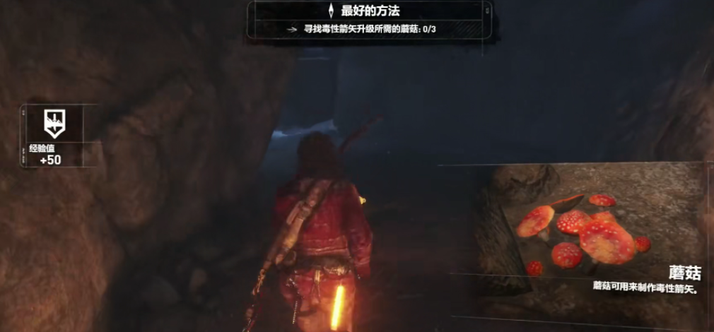 4、醒来之后,根据求生技能,我们可以知道制作毒性箭矢来击败熊,首先我们先找到蘑菇。