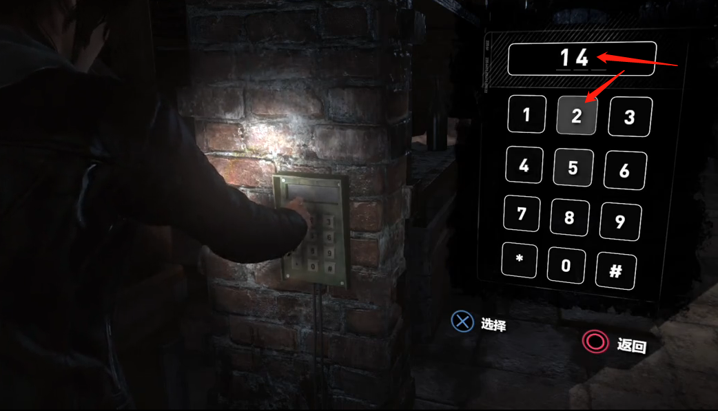 2、纸的反面是一组埃及象形文字,对照劳拉小时候学习的象形文字图表就可以知道数字,最终确定地下室密码是142。