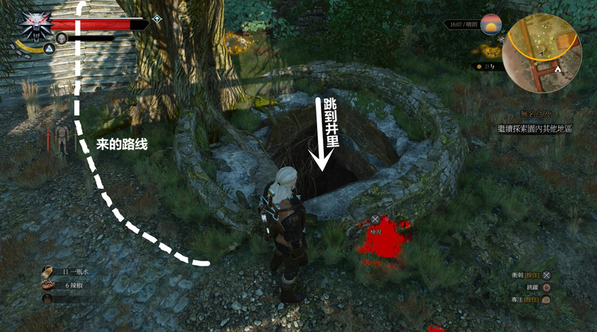 5、来到尽头后,跳下井里即可,以上就是内院的走法,如下图所示: