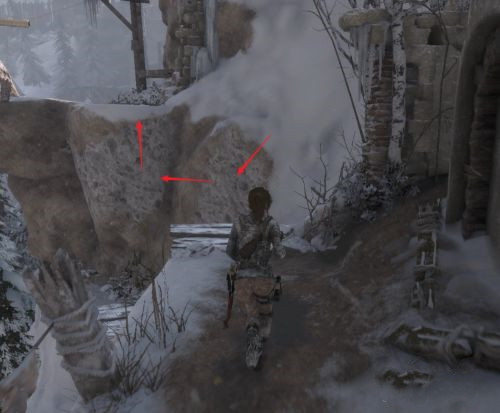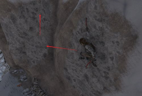 2、跳到前面的冰墙上,向左攀爬再跳到左边的冰墙后,向上攀爬到前面的平台。