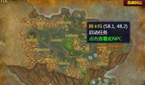 任务需要去阿卡玛那接取,坐标是(58.1482)。