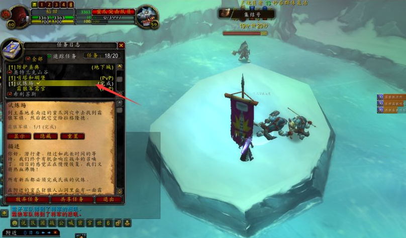 2,然后进入奥特兰克山谷战场,和NPC对话后找到【试炼场】任务。