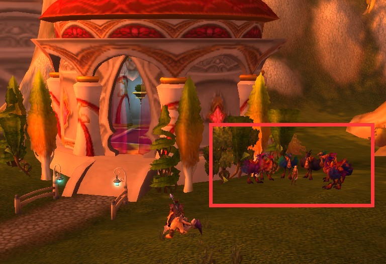 3.走上去后就可以看到一个建筑旁边有一群陆行鸟,骑术训练师就在那群陆行鸟的中间。