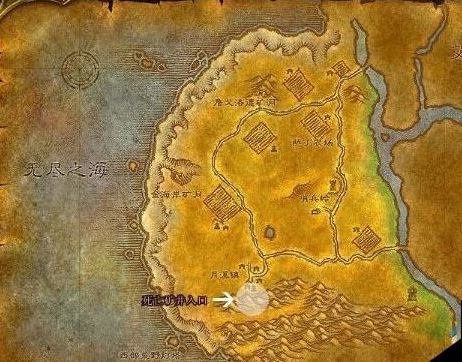魔兽世界游戏中,死亡矿井入口位置如下: