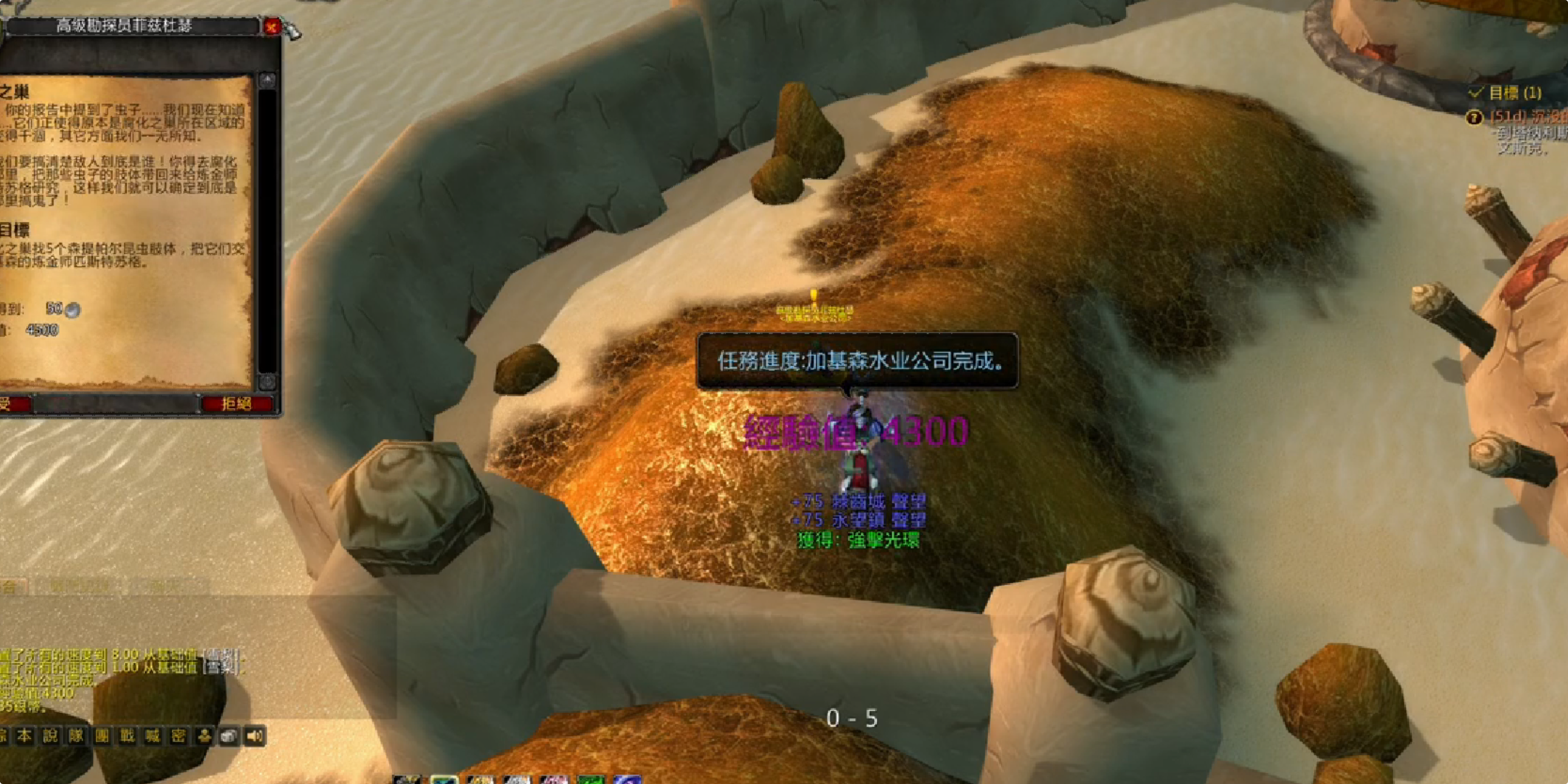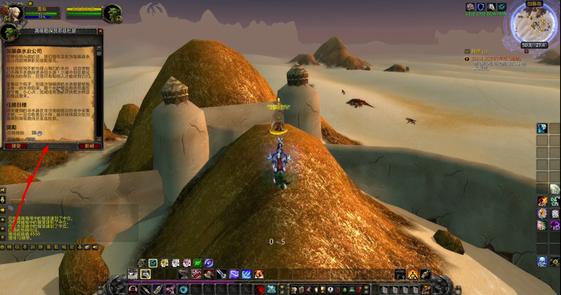 4.然后就赶紧跑,路上还有很多怪,不要管它们,回到加基森小镇中坐标(50,28)NPC高级勘探员菲兹杜瑟交还任务领取奖励就可以了。