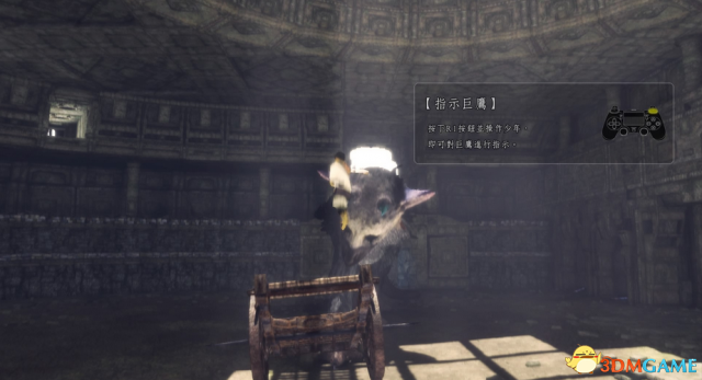 随后,在竞技场上上演『巨兽,正太与四大痴汉那不能戳的秘密』后,记得安抚大鹫并把刚刚找到的圆桶喂食,并在大鹫的协助下,把一个人力推车从一个地方拖出来,并在地上找一个士兵的头盔,把它放在人力推车上,在给大鹫下指令让它对着人力推车玩跷跷板游戏,把头盔弹道上方的房间。