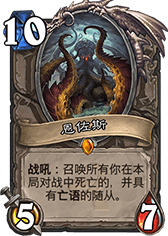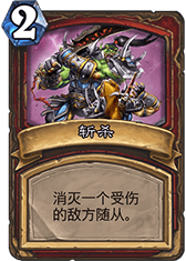 一方面,由于快攻猖獗,慢速卡组很少带一堆大哥,宇宙术都经常不带罗斯了,战士再满编单解也许没有必要,盾猛哪怕打海盗战也好用,是能进能退的牌,但斩杀和乱斗就不大一样。所以,我仅仅带了一个斩杀和一个乱斗。当然,如果环境变化,也可以做出调整。
