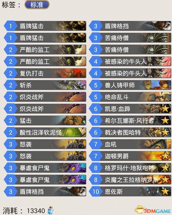 最后,我带上了恩佐斯体系和嘉顿,吼爹,罗斯等不少大哥。没有带挖宝,个人觉得没用,这版本战士无力打大后期,加上新橙卡加入导致没用橙卡变多。因为没有了第二个乱斗,没有了挖宝,多带两个大哥不会大幅度降低快攻抗性,但确实为土豪战对抗中低速卡组的时候创造了胜利点。这个版本,大家单解带得很少,小德不带腐根,牧师只带一个灭,埋葬顶多一个,宇宙术只有灵魂虹吸,没什么人还带王牌吧!土豪战恢复中期一回合一橙卡的古典战术套路,而不是在手里卡着两张乱斗是有前途的。