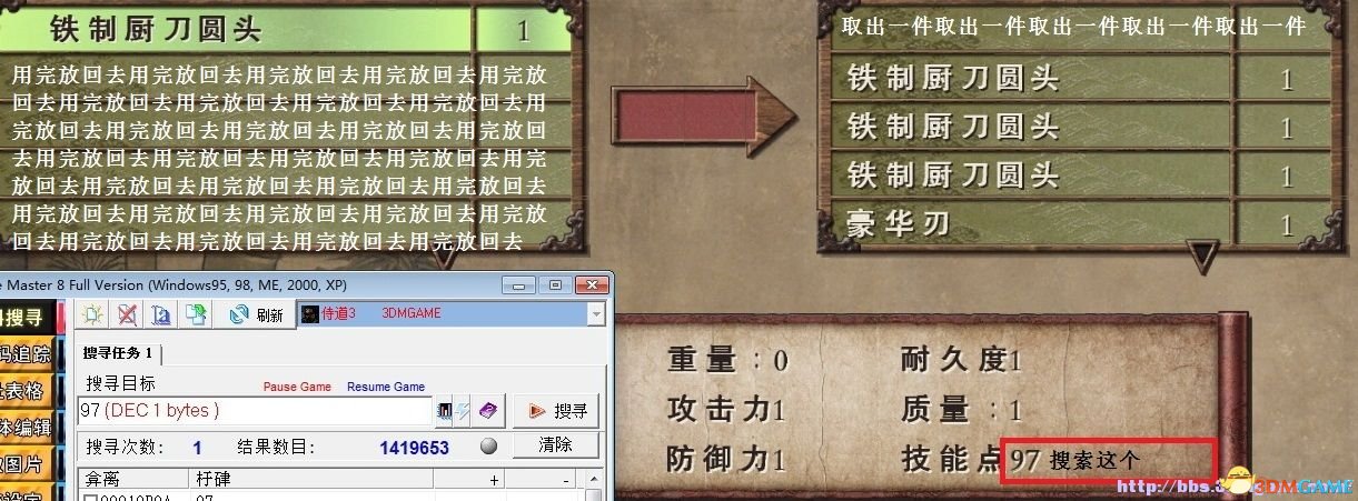 侍道3 武器部件内存修改大法 怎么修改武器部件