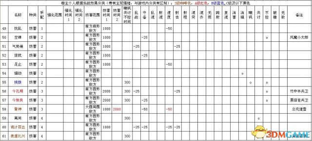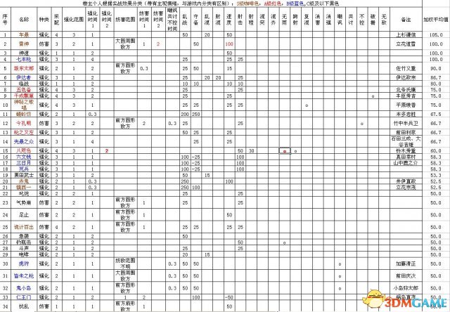综合以上数据分析方法,我们进行加权平均处理,得出以下表格,即战法每单位采配所得收益: