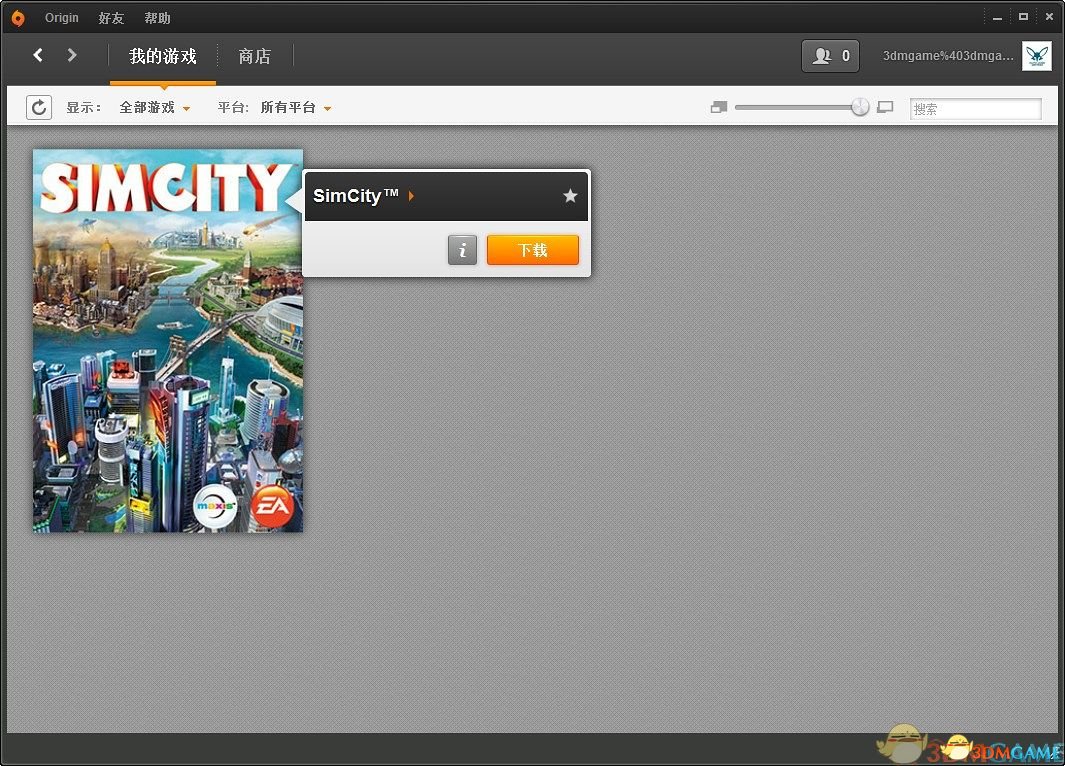 8、如果你以上操作都正确的话,就会到下面这个界面,点商店看到的是一个破解的说明页面,点我的游戏可以看到模拟城市5这个游戏了,然后点游戏封面,再点下载,选择繁体中文,立刻下载,直到下载安装完成,点运行。