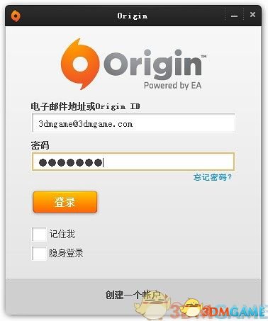 7、安装完Origin会自动启动,到了Origin的登录界面,输入:
