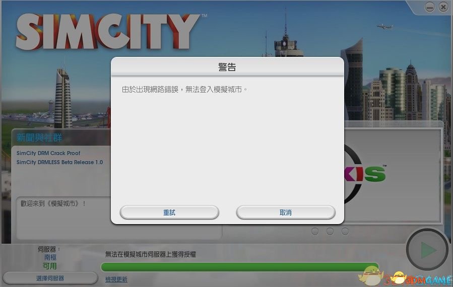 10、自动重启后出现一个错误的警告,点取消,然后到Origin界面点模拟城市的封面,再点一次运行按钮,就可以正常运行了
