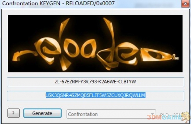 4、切换回到keygen.exe程序,点击Generate,并等一会。然后复制图中蓝色部分。