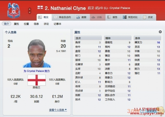 《足球经理2012》推荐2个英格兰的边后卫小牛 FM2012里好的边后卫很少,英格兰本土的就更少了。。此两位年轻的边后卫可能可以解决很多朋友的难题。。 基本属性都不错,预判、爆发力(边后卫的基本修养加速上抢)都优秀。就算不是豪门级主力,也是中上游的主力!