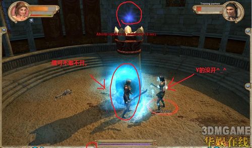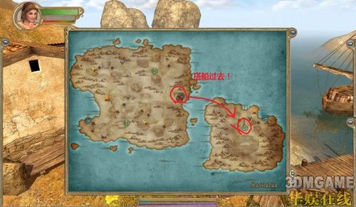如图,可在图一标记处搭船过去,竞技场可选择跟1人、两人或三人比试,分别可得到god favor 5、10、15。