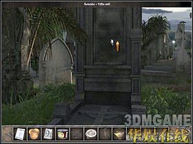 进墓地的大门后,在右手边的长凳下面找到一个箱子,在里面拿到刷子。接着往前再左转,查看一个点着蜡烛的坟墓。