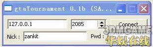 2085是端口, NICK是进入游戏后的显示的名称,PWD是服务器登入密码。全部输入好后点CONNET就会自动链接