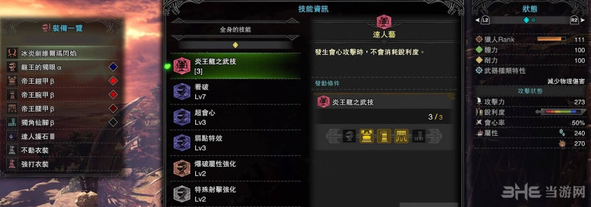 再加上附带炎王龙的,懒得磨刀,达人艺技能,会心时不消耗锐利度。