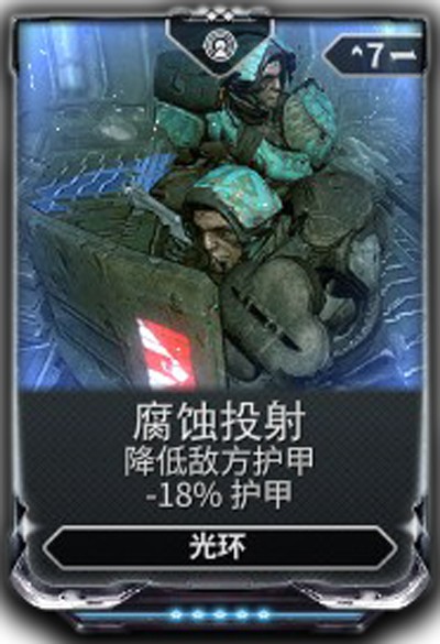 3、腐蚀投射是一个非常好用的光环效果,可以削减任务中所有敌人的护甲属性。
