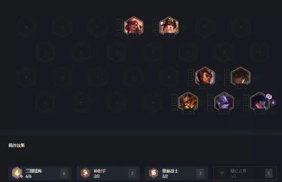 2阶段我们的目标就攒钱,留取三国棋子与神射棋子,我们的目标是6三国4神射,攻略后面有变阵,阵容并非唯一。