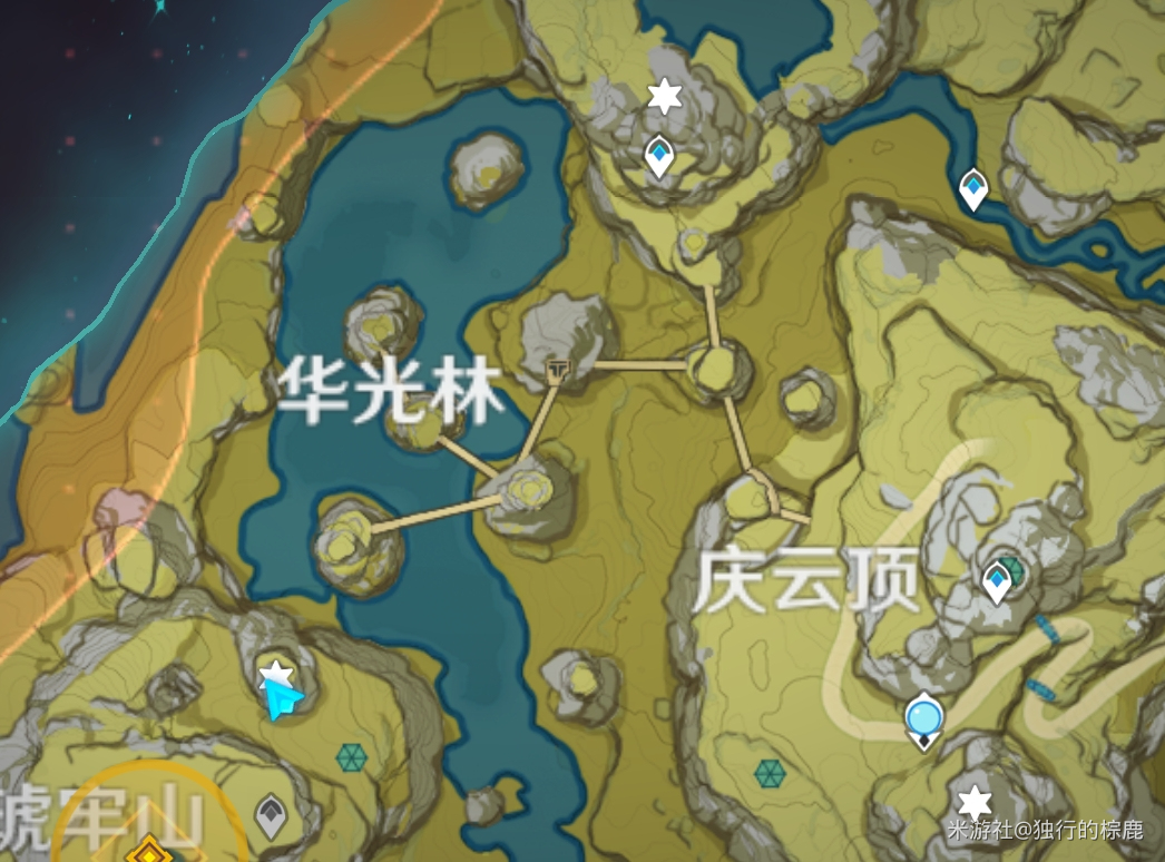 原神庆云顶三鸟位置是:先去庆云顶的传送点,然后用滑翔飞去三座山峰,三鸟的山峰上都有类似云朵的特殊图案,不要飞错,三鸟山峰位置地点,已用星星标记,第一座山峰在地图右下角。