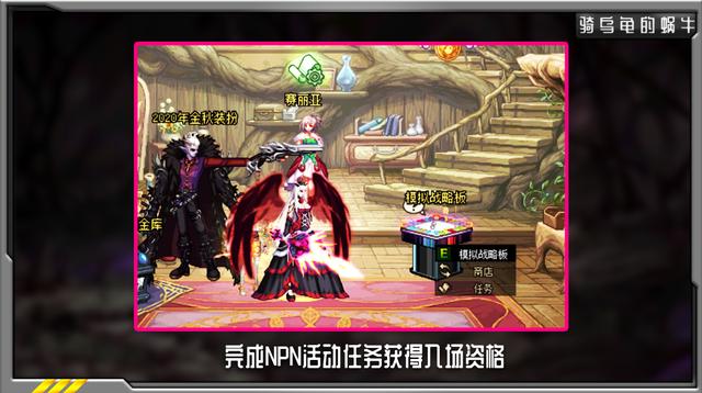 DNF幻想模拟战进入方法赛丽亚旁边有模拟战略板,这一个是活动NPC,开始前需要和NPC领取活动任务,对话结束后通过这一个NPC传送进入专属的活动频道。并且任务奖励10个模拟币材料。