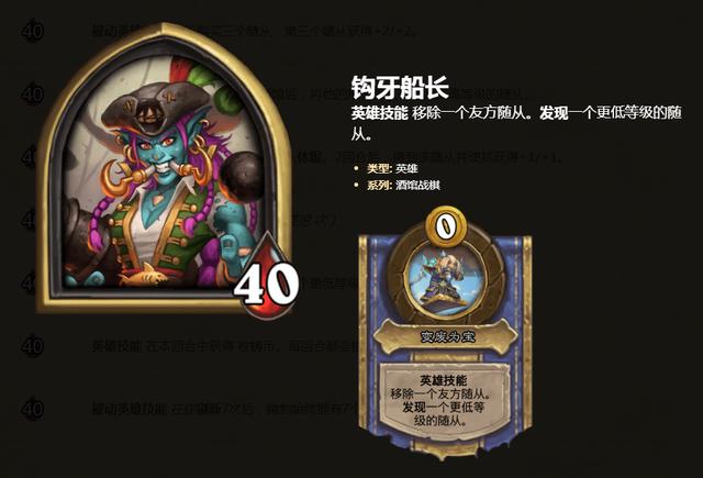 那我们先来看看这次的第一梯队,毕竟小伙伴们更喜欢看能吃鸡的英雄!首先就是钩牙船长了,这个英雄是真的强,小皮一般遇到他都会选择拿这个,因为这个英雄真的很容易刷出理财怪!如果说你前期拿了理财鱼,不断的用钩牙船长的技能刷随从,你会发现很大的几率刷到理财怪。像雄斑虎以及加班杂兵都是很好刷的,你们在看到别人6.7费就已经4.5本了就是这么来的。所以说现在钩牙船长能在第一梯队不是不可能的,升本升的快越容易找到关键牌!