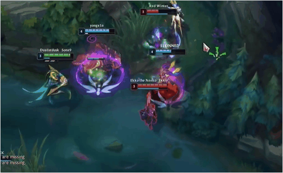 琴女是软辅,对线期有Q的时候可以站在AD的前方给Q去消耗对手,找机会也要多用平A去消耗对手的血量,如果对手是锤石、机器人这样的钩子辅助,琴女就不要太激进,以保护为主,尽可能的跟着AD的节奏走,不要断节奏,不然会非常伤。进入团战期琴女的R是很好用的开团选择,要把握机会,根据队友、对手的站位来开团,必要时果断闪R也行。