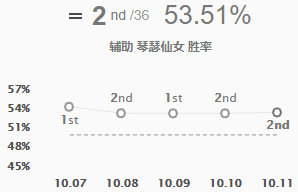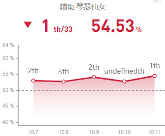 琴女的胜率在国服的10.11版本位于版本第一,在坦辅当道的版本中琴女算是清流。