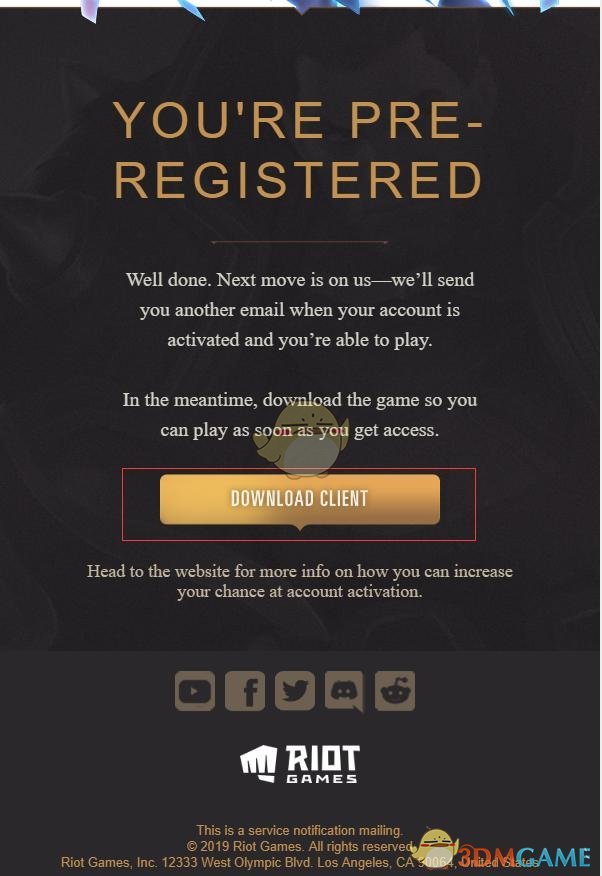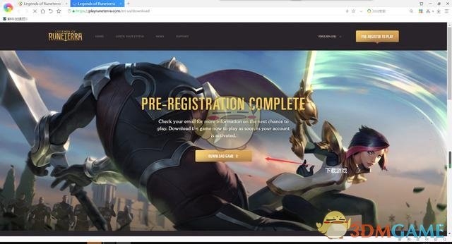 第六步:点击确认后官网会有以下提示,该提示即为注册成功,可以点击按钮下载游戏。