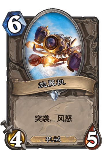 《炉石传说》巨龙降临旋翼机介绍 炉石传说是一款非常受到玩家喜爱的游戏,近日新版本巨龙降临即将上线,目前官方透出一张中立新卡,名叫旋翼机,很多玩家都好奇这张卡片的效果是什么?下面一起来了解下吧! 中立普通随从,6费4/5; 突袭,风怒