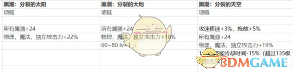 太阳套同项链 首饰里太阳套属于技能均衡发展的一套 大地套提高了大剑和二觉的爆发 暗帝的二觉就当前版本来说比较鸡肋 普雷也是小游戏+破防时间内输出的机制 天空套增加了镜子盛宴的续航不排除后期重做/大加强40和狂怒的可能性,建议太阳/天空二选一。