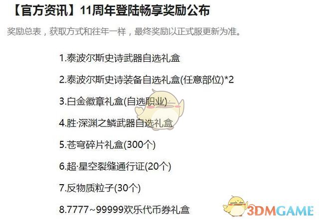 这次赠送的还有胜武器自选礼盒,苍穹碎片,超时空深渊票以及反物质粒子,这些奖励大号也是基本不缺的,并且获取的代币券是7777~99999,相信百分之99.99玩家都是7777代币券,毕竟每年的代币券玩家们都是拿低保,像什么99999代币券也就只有在梦里想想。