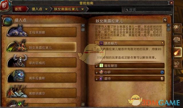 7.3阿古斯大型侵入点BOSS妖女奥露拉黛儿的技能诱惑魅力(Beguiling Charm):妖女奥露拉黛儿魅惑所有面对她的玩家,持续20秒。对被控制的玩家造成足量的伤害可以解除效果。