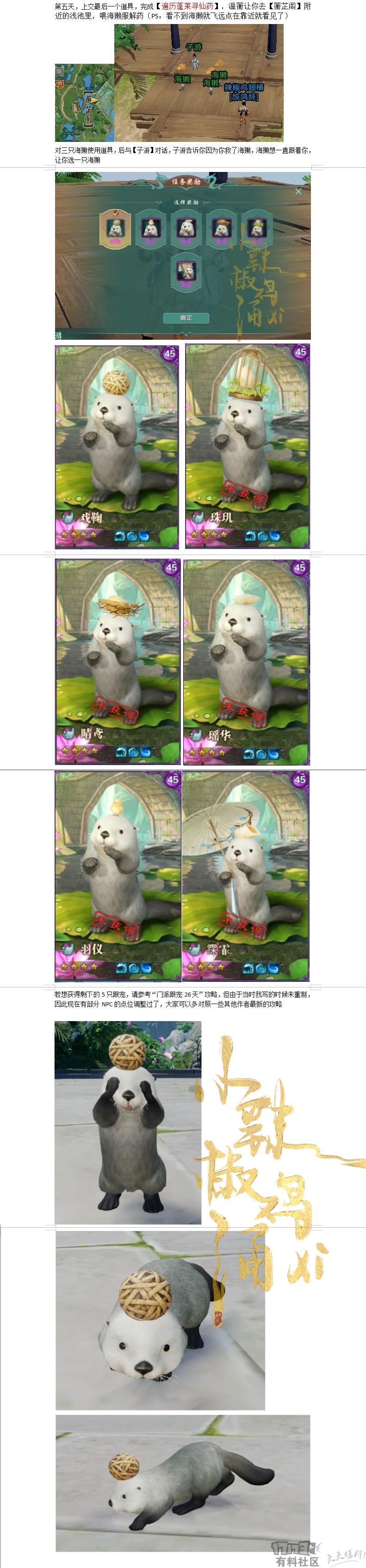 我们需要找到小石子,找到后找子游,这个时候子游会让我们去找小海獭的踪迹,第一个位置是蘅芷阁瀑布下面的石头,会叫我们去第二个地点,悟剑谷南边的海滩,就是那个半圆的海湾位置,然后提示我们找第三个位置,九歌岛的九字上面的那个小岛。就能找到了。