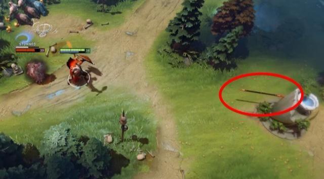 而第二个手法则是利用道具了,利用道具的手法其实也有几个,最好想到的也就是利用树枝,在对手的背后种下一个树,将其推上去,自然也能眩晕,更何况在前几个小版本更新中,种树的初始距离被提升到了初始200码,在你和敌人贴脸的时候,很容易就能够完成这个操作,但是稳定性比较差,有时候敌人还是会擦边而过,这就浪费了50金币的经济,所以这种操作并不太适合使用,而接下来要说的道具只能说是个小科普了,因为在被发现之后,V社紧急修复了这个问题,毕竟要被算成一个BUG啊!