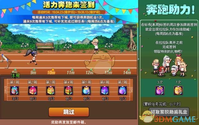 看了看,这一期奔跑才是奔跑应该有的样子,因为是真正的跑起来了,而活动时间是4月23日到6月13日,只需要签到7周就能领取终极奖励,而看这个日期,大概可以知道周年庆版本应该是在6月13日。活动需要每周刷3次推荐图,补签需要刷9次推荐图。目前活动奖励主要分为每周奖励和累计奖励。每周奖励目前查看每周都是5张星空裂缝通行证和3张鸟背通行证,要是鸟背票换超星空多好呀。