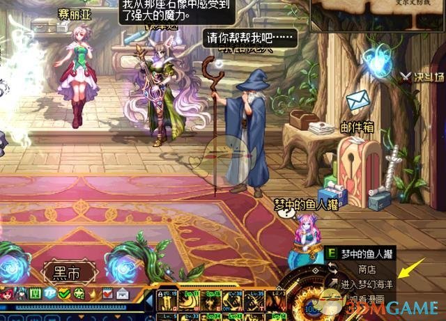 在赛丽亚房间由一个活动NPC梦中的鱼人罐,我们点击她进入梦幻海洋,移动到活动区域,移动到了之后会变成一直丑陋的鱼人,跟往年的很像。