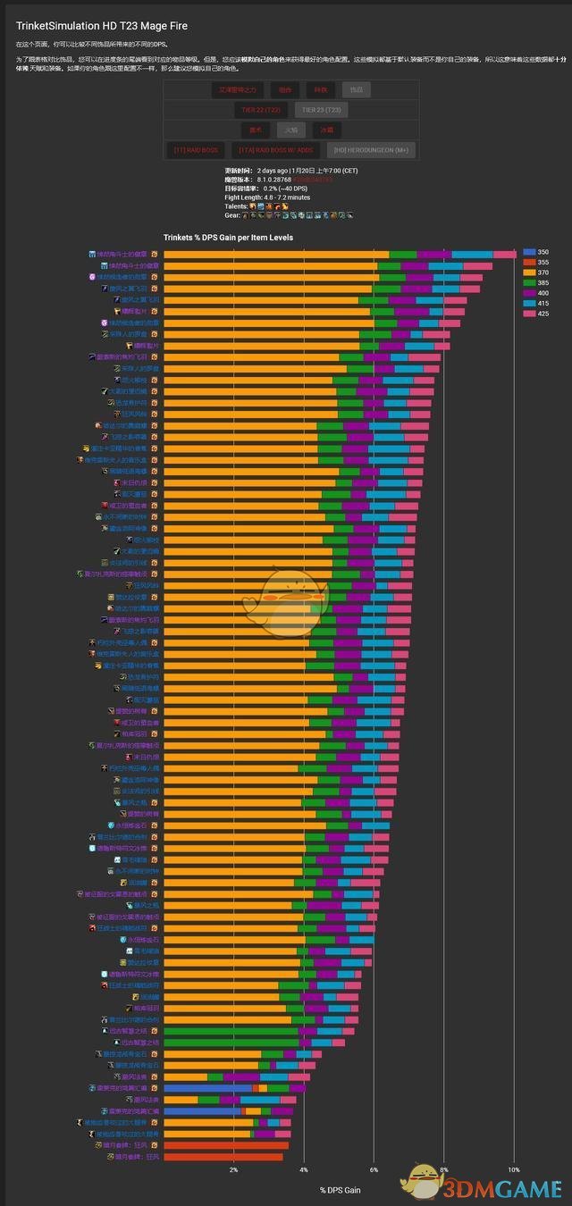 PS:所有排序均以T23(8.1毕业)装备为基础.
